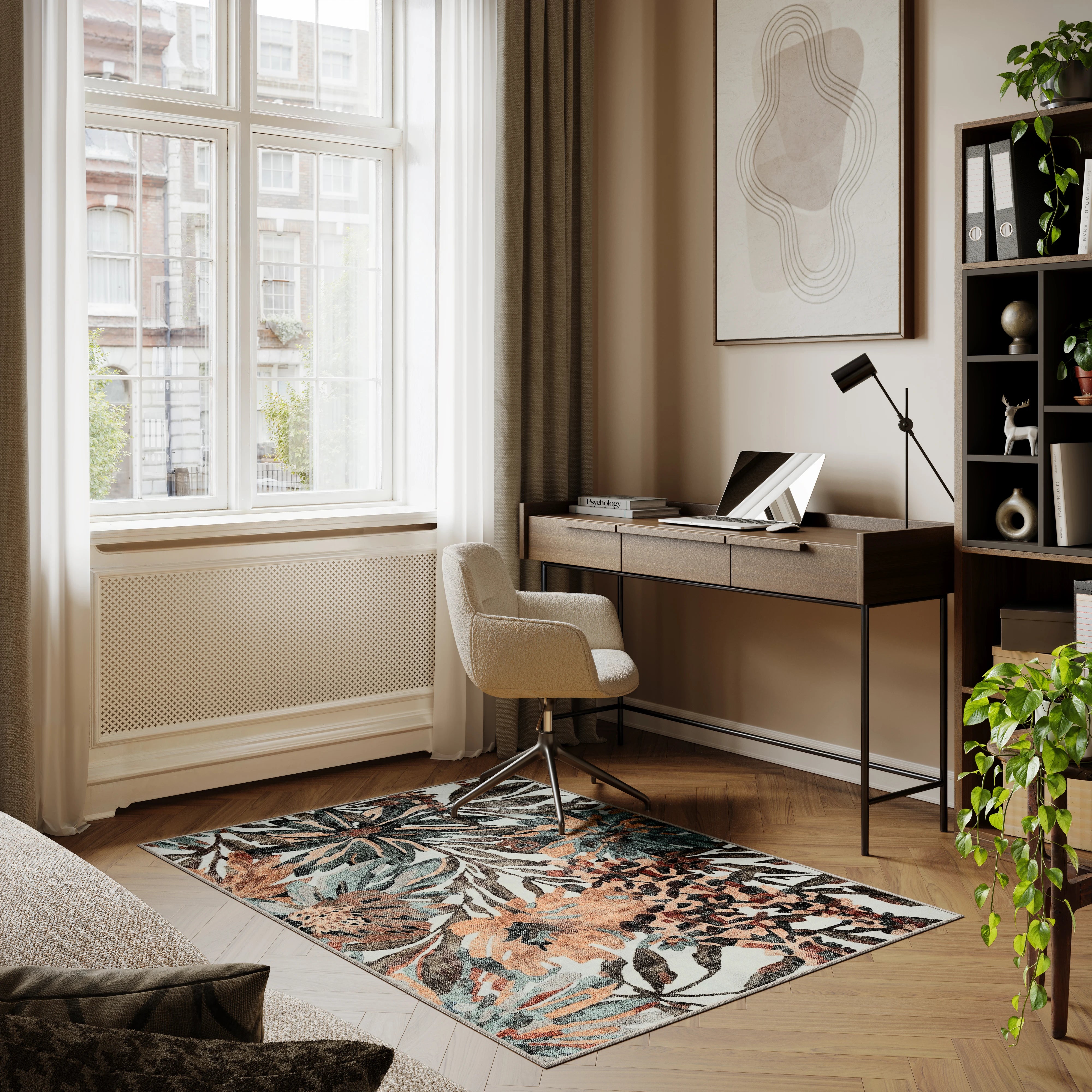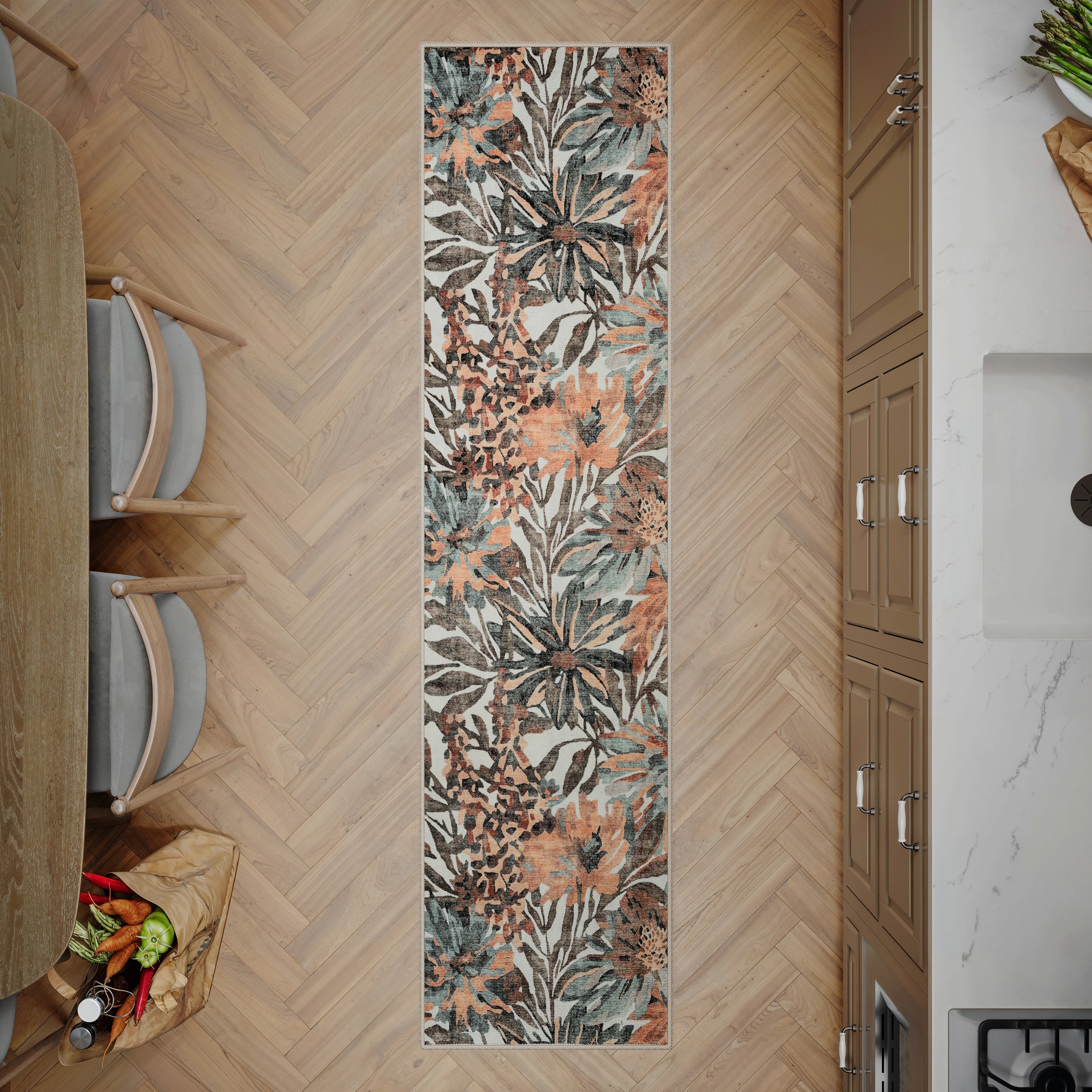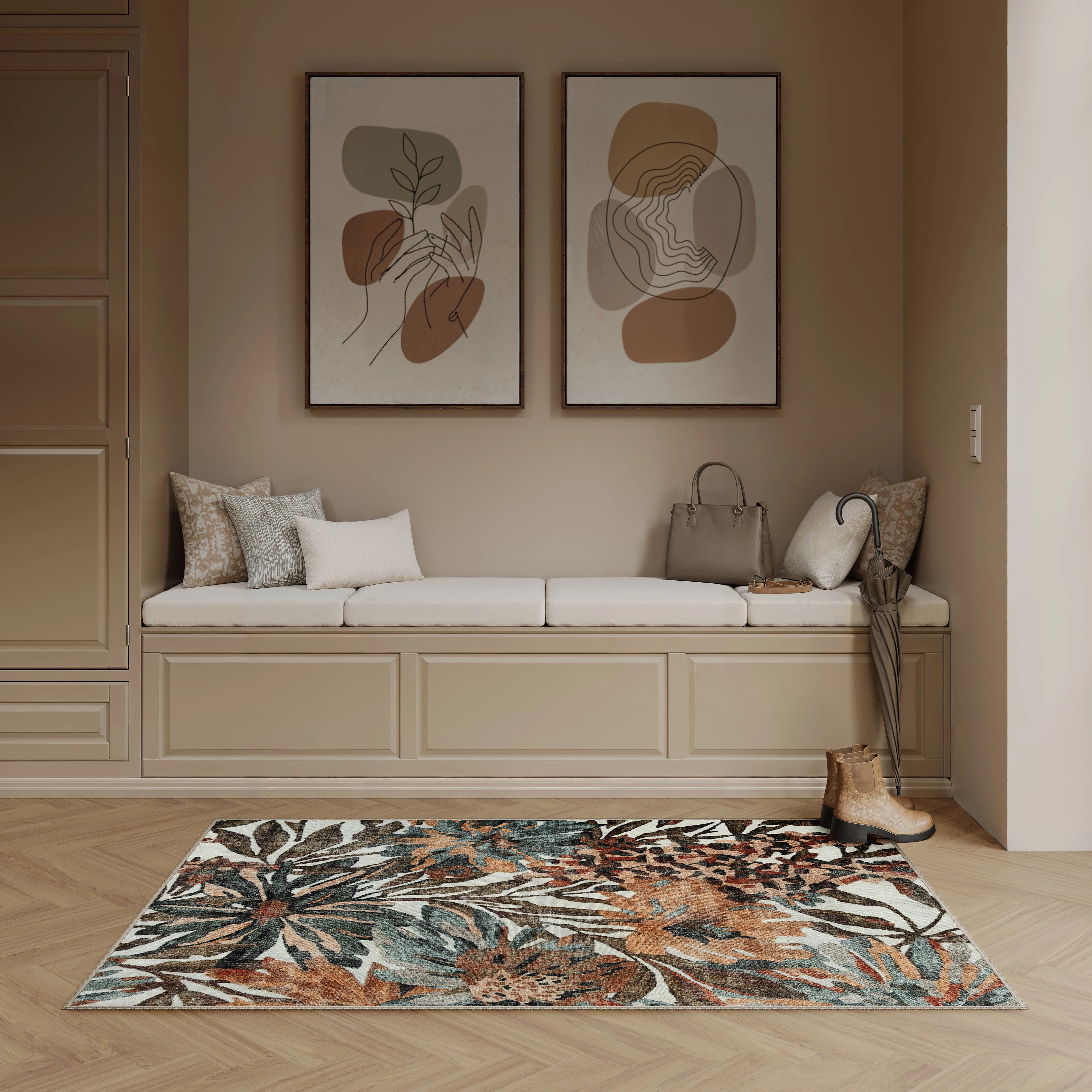 Dark Khaki & Peach Washable Rug
