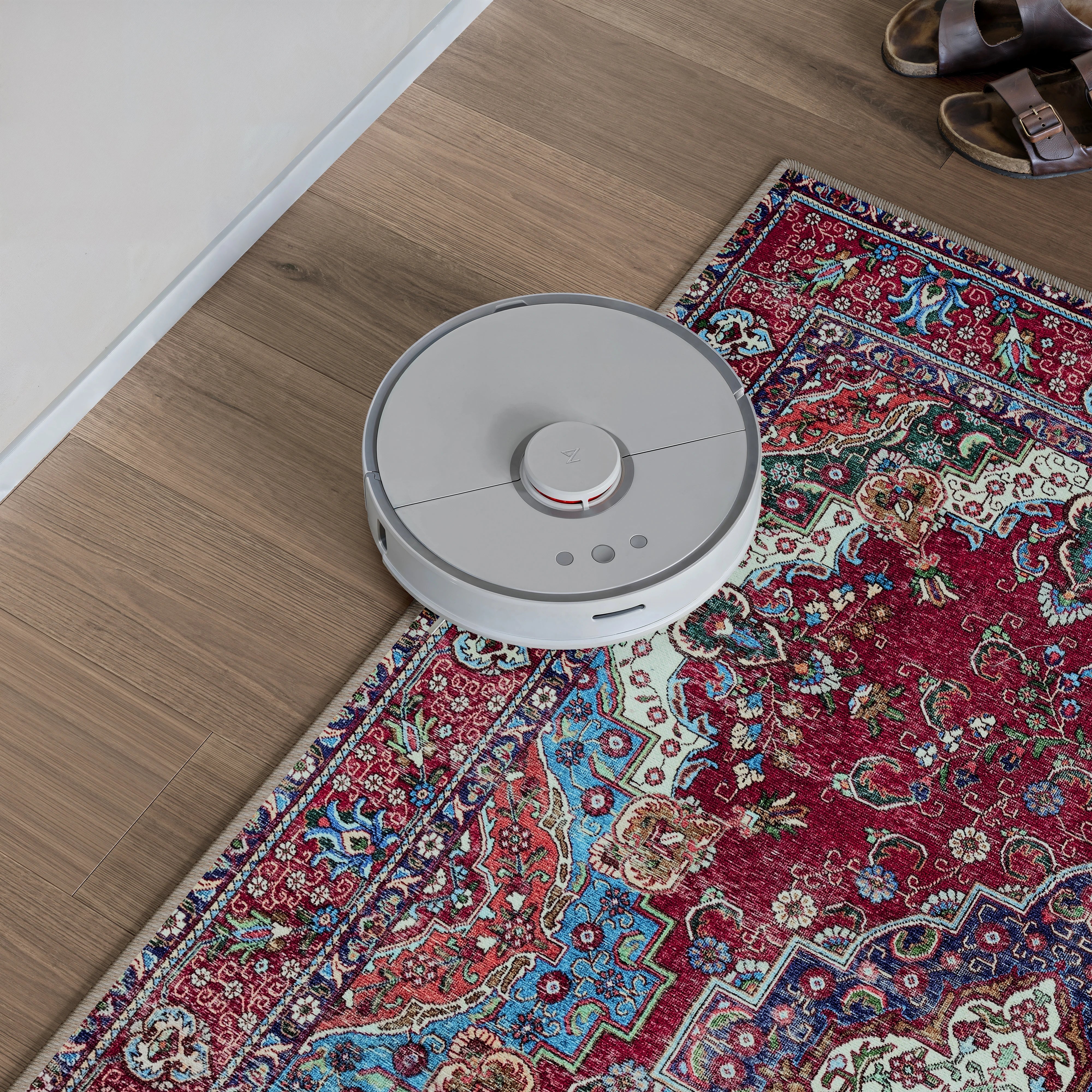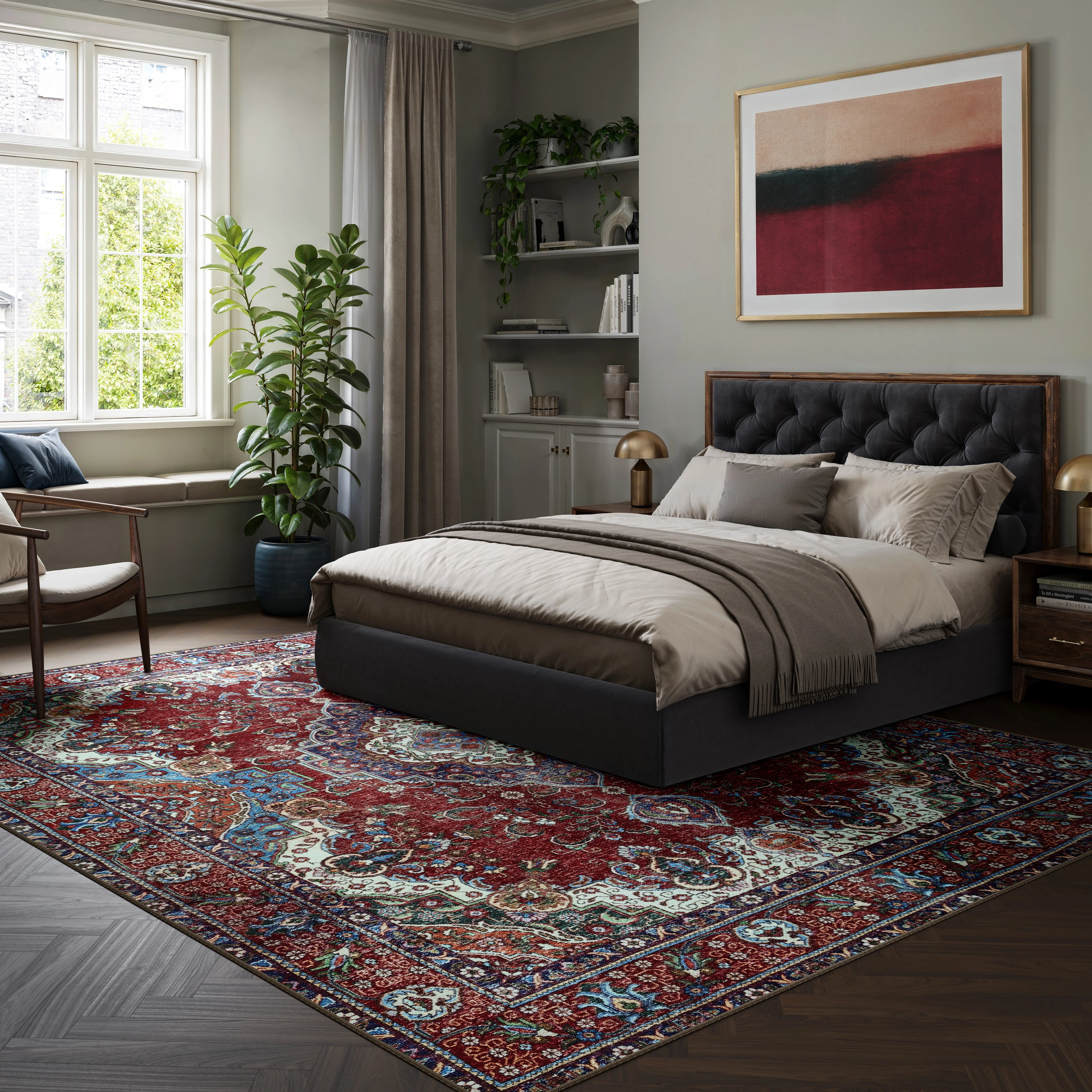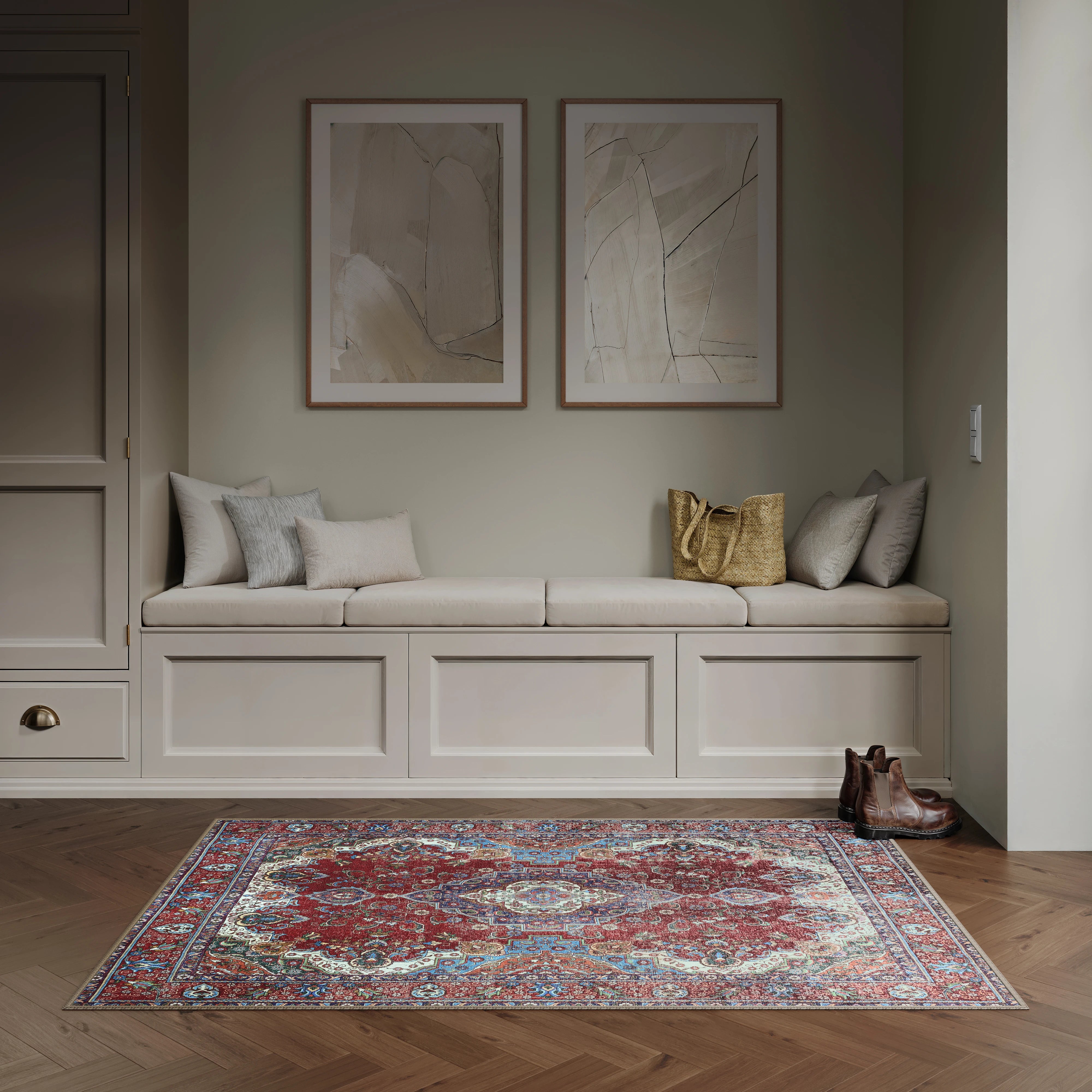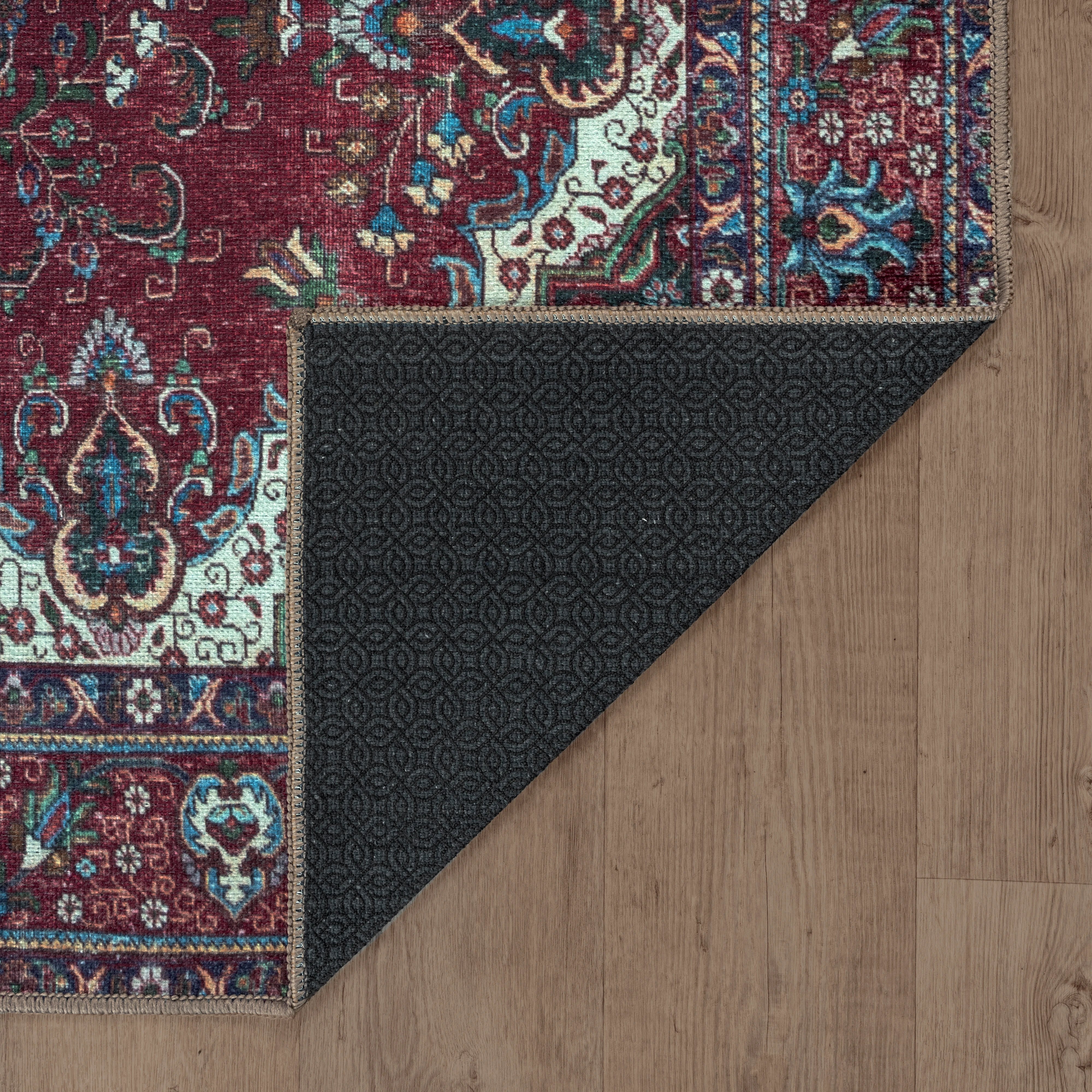 Burgundy Red & Blue Washable Rug