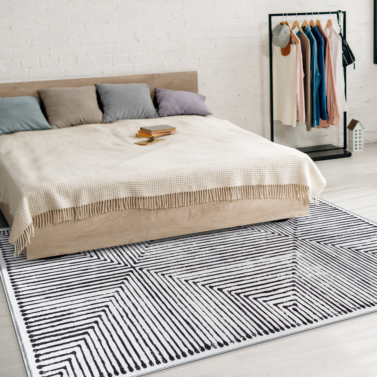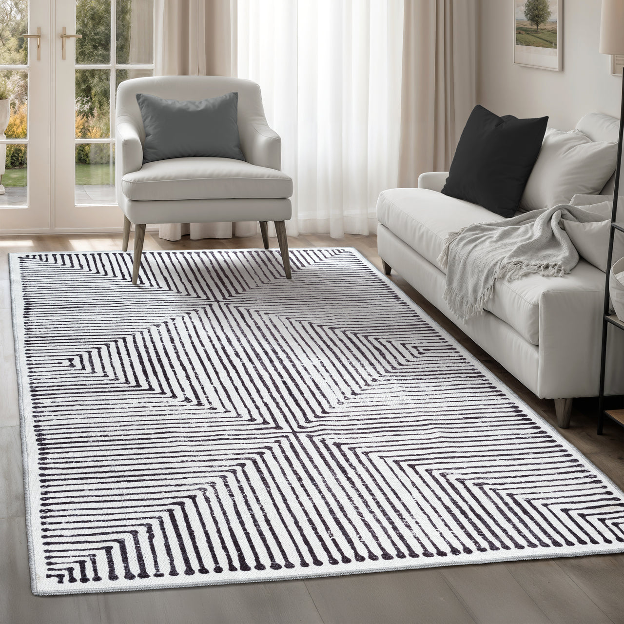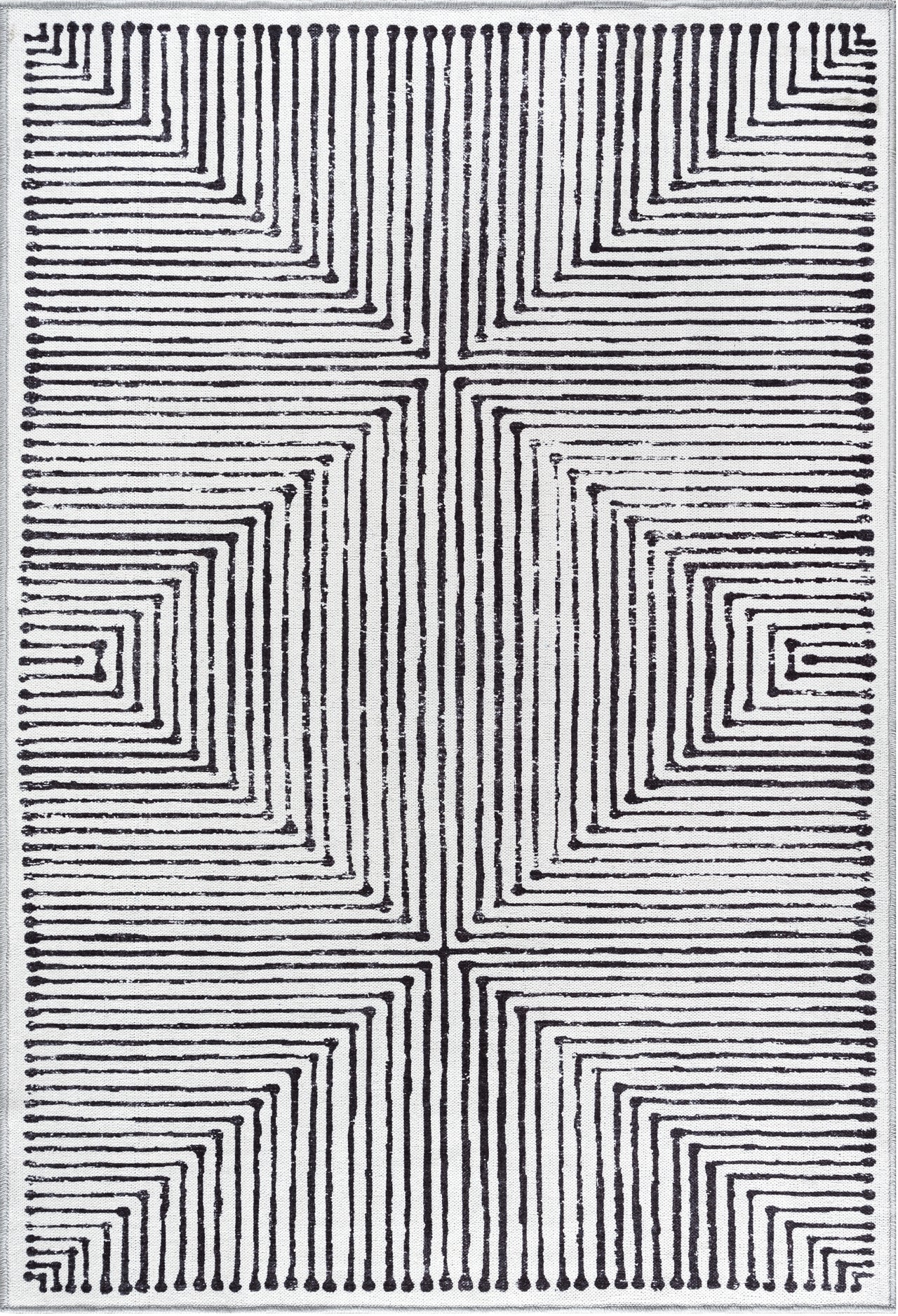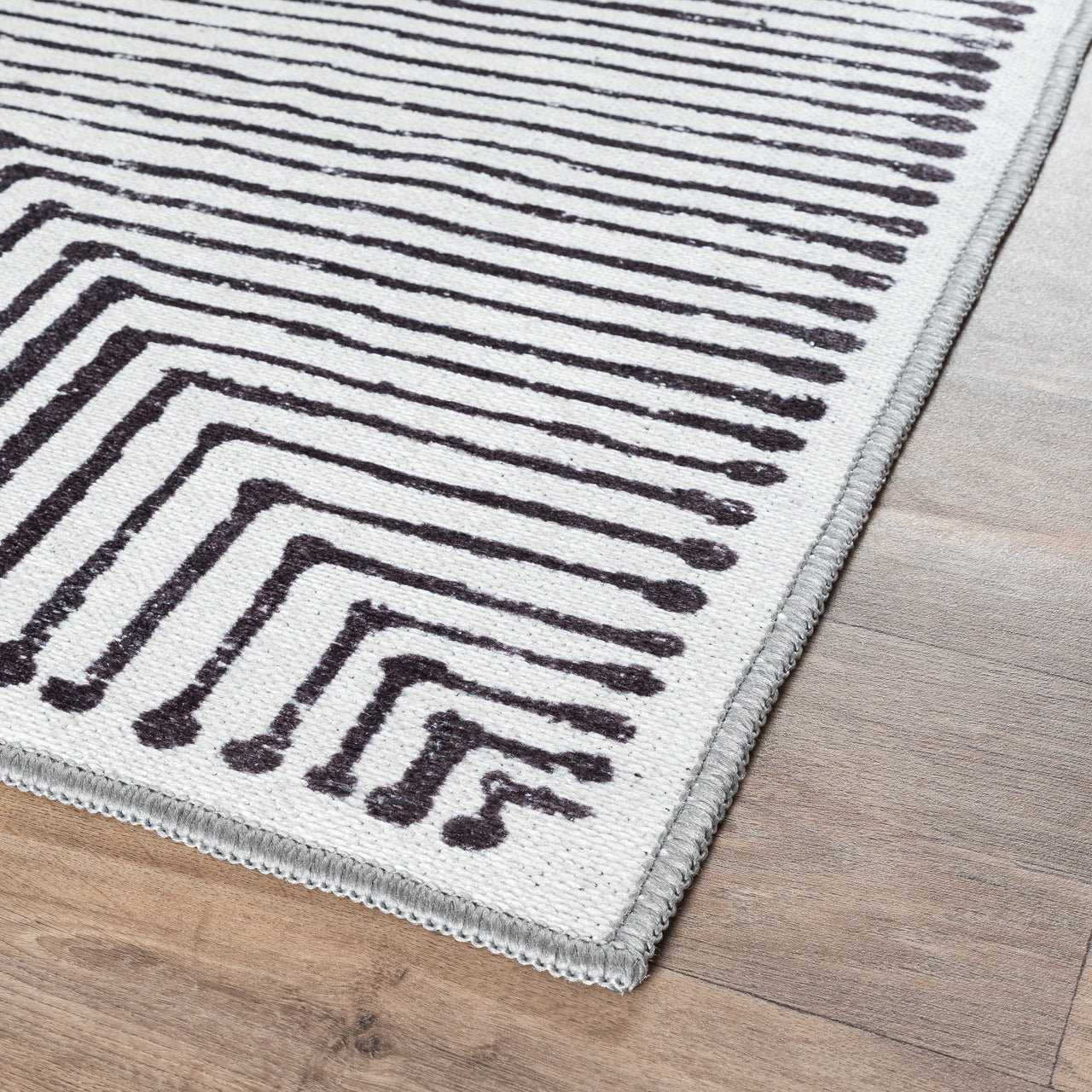 Grey & Black Inkflow Washable Rug