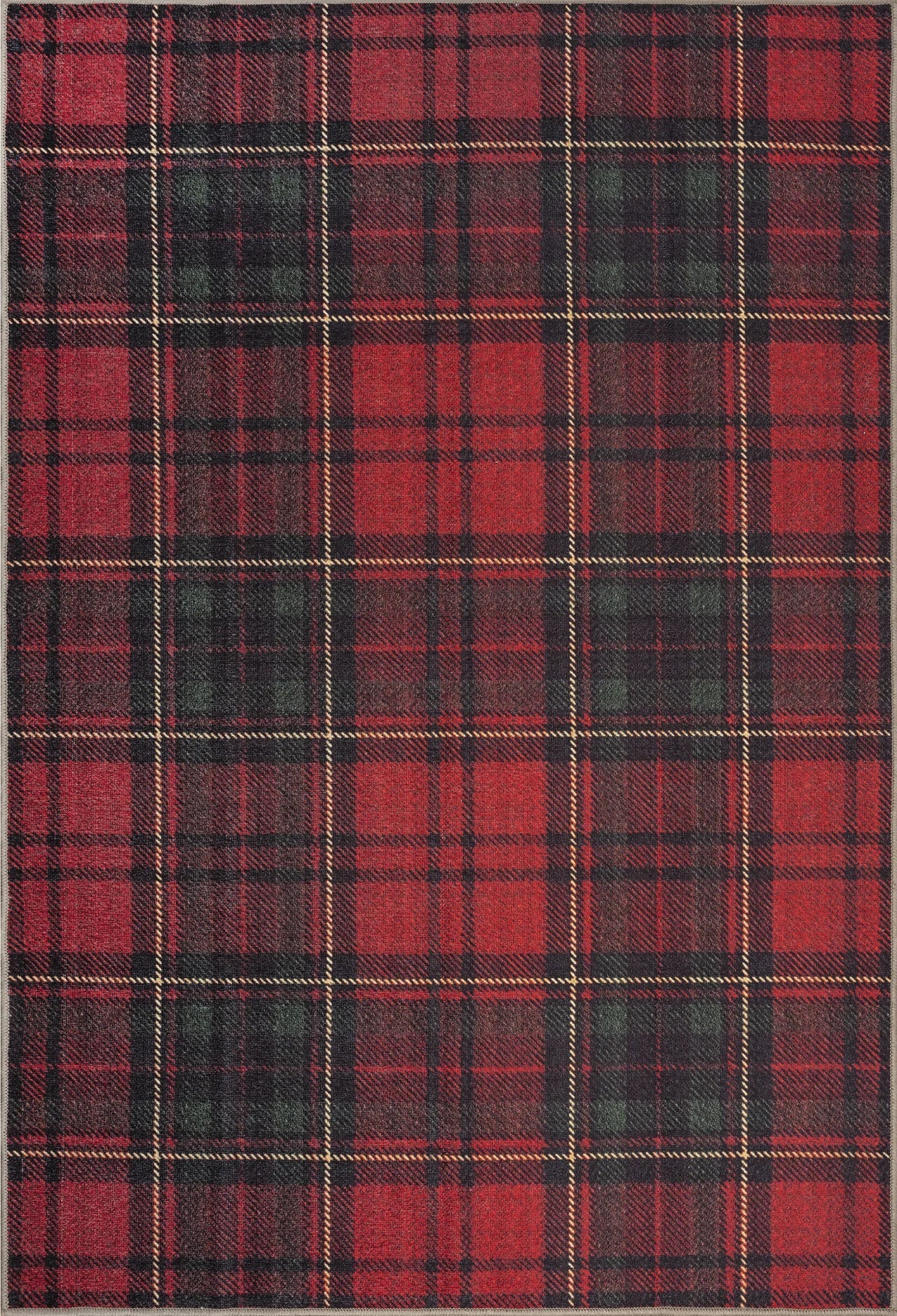 Red Tartan Washable Rug